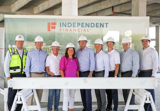 KDC and Independent Financial have topped out Phase II of the Independent Financial headquarters in McKinney, Texas. This milestone represents the installation of the last beam at the highest level of the new building.